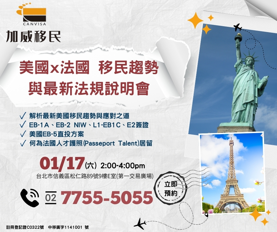 11/01(六)美國 x 法國 移民趨勢與最新法規說明會