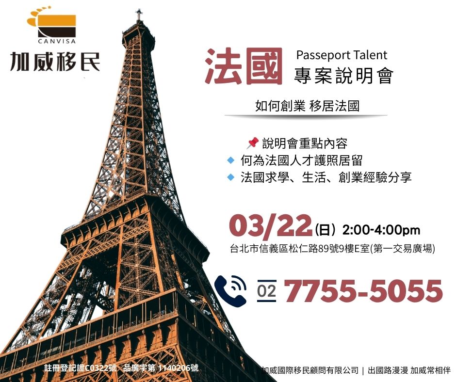 11/01(六)美國 x 法國 移民趨勢與最新法規說明會