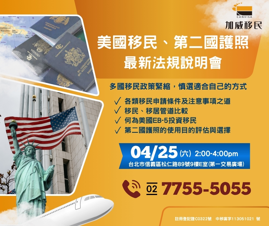 美國移民 第二國護照最新法規說明會